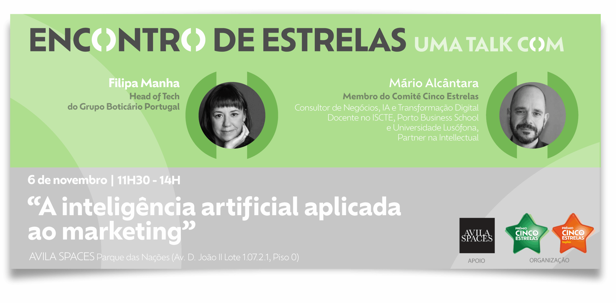 A conversa juntou Filipa Manha, Head of IT do Grupo Boticário Portugal, e Mário Alcântara, membro do Comité do Prémio Cinco Estrelas, num diálogo sobre o papel da cultura e dos dados na adoção da inteligência artificial nas empresas.